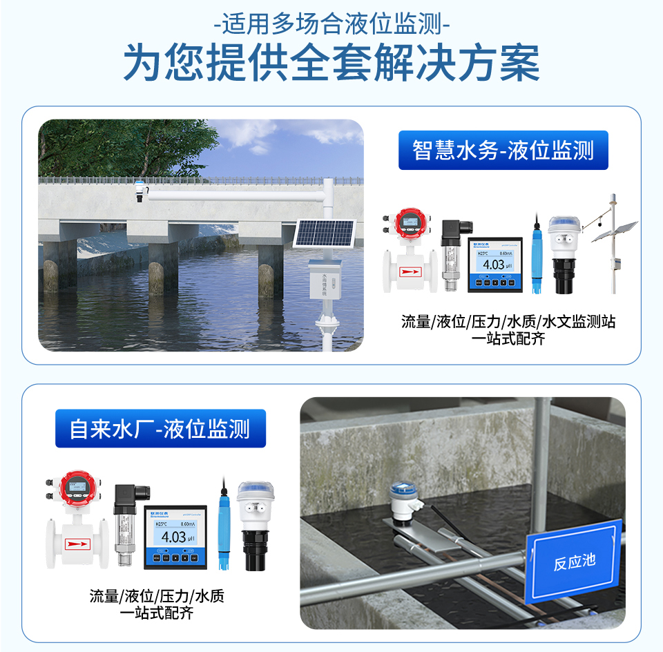 產品描述:分體式超聲波液位計的原理是測量一個超聲波脈沖從發出到返回整個過程所需的時間。超聲波液位計垂直安裝在液體的表面,它向液面發出一個超聲波脈沖,經過一段時間,超聲波液位計的傳感器接收到從液面反射回的信號,信號經過變送器電路的選擇和處理,根據超聲波液位計發出和接收超聲波的時間差,計算出液面到傳感器的距離。分體式超聲波液位計廣泛用于罐體、水池、水庫的液位和體積測量,也可用于明渠的流量測量。